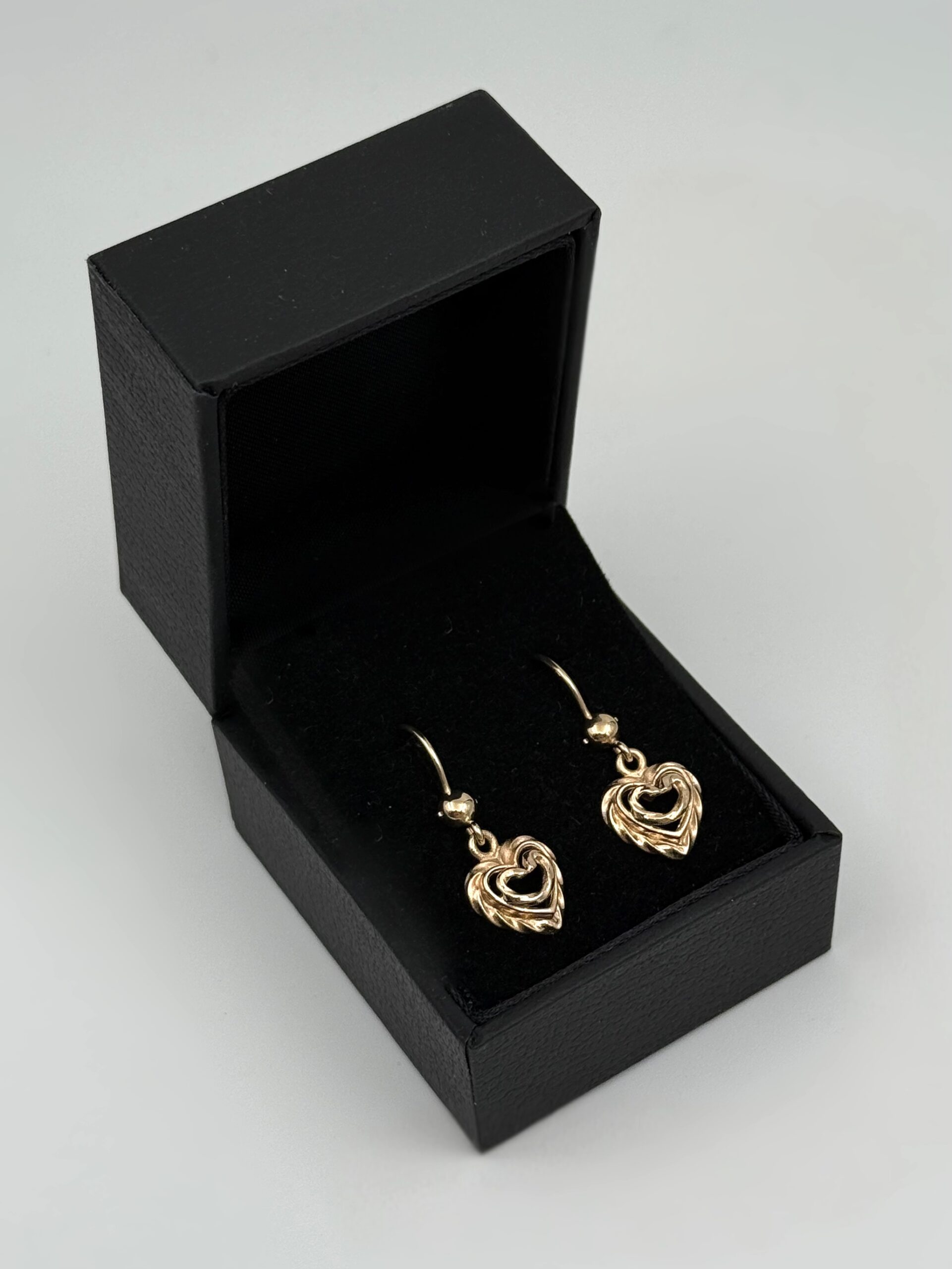 Kauniit second hand Kalevala Talon sydän -korvakorut. Valmistettu 14-karaatin keltakullasta käsityönä Suomessa.
